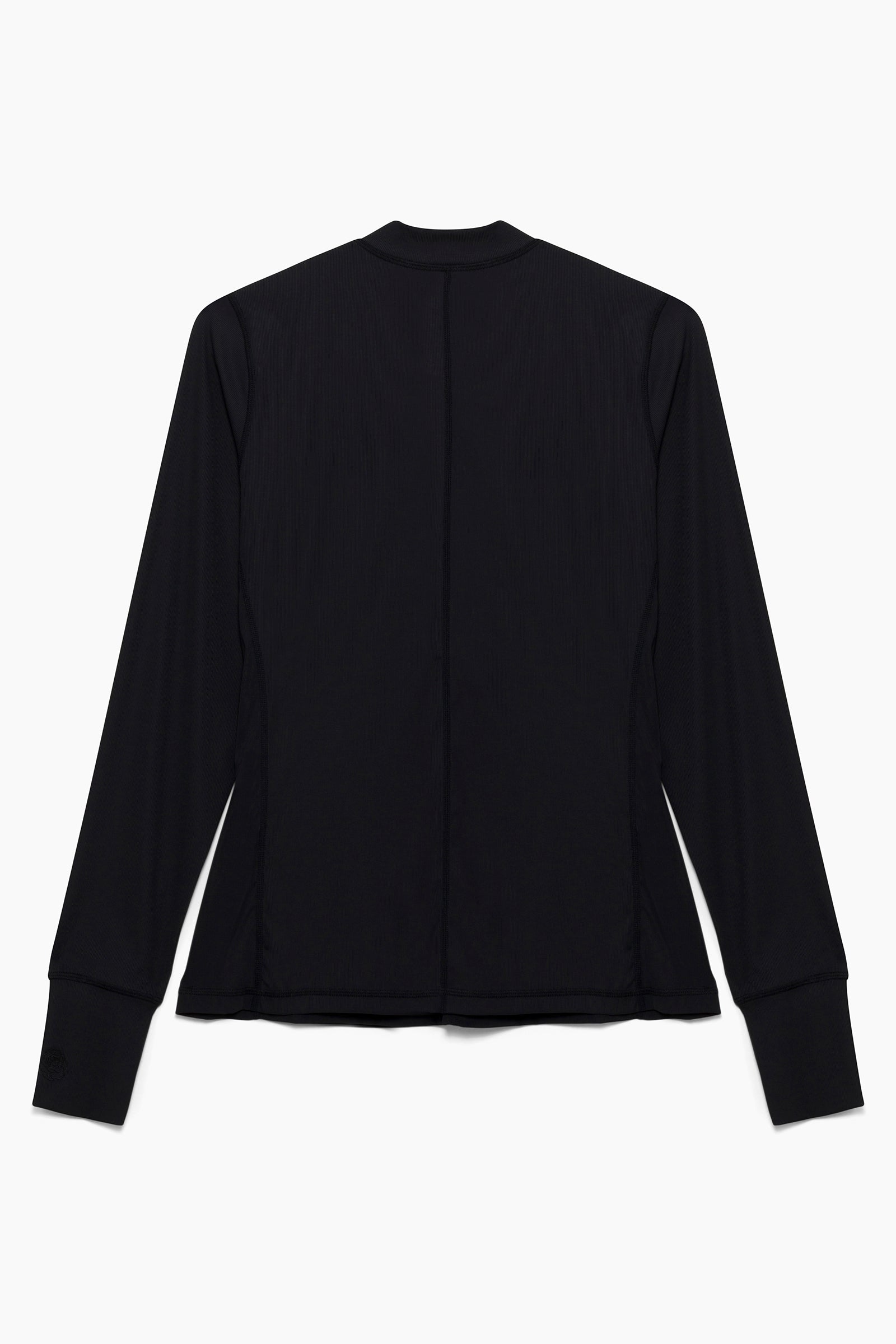 She lays close to the body with her flat lock seams, and cozies you up with thumbholes.
