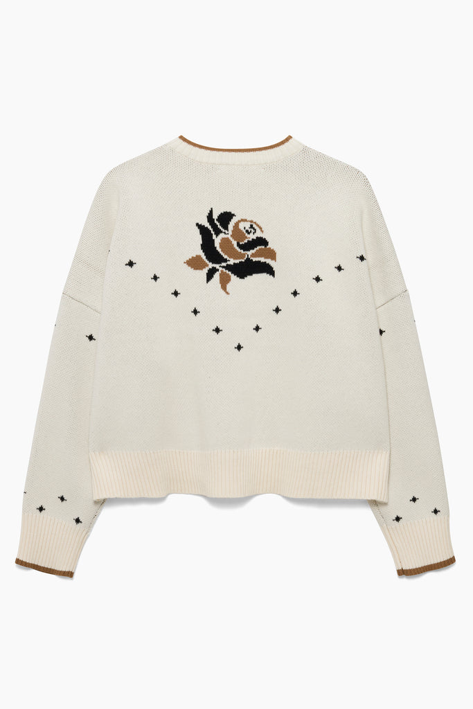 Cozy meets character in the Libby Zip Cardigan. This slightly oversized piece features a brass front zipper, contrast stripe details, and charming design touches like twinkling stars across the chest and shoulder, horse head patch pockets, and a beautifully intricate rose on the back. Designed for the forever horse girls who whisper their love far and wide.