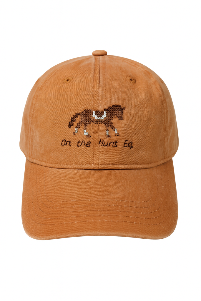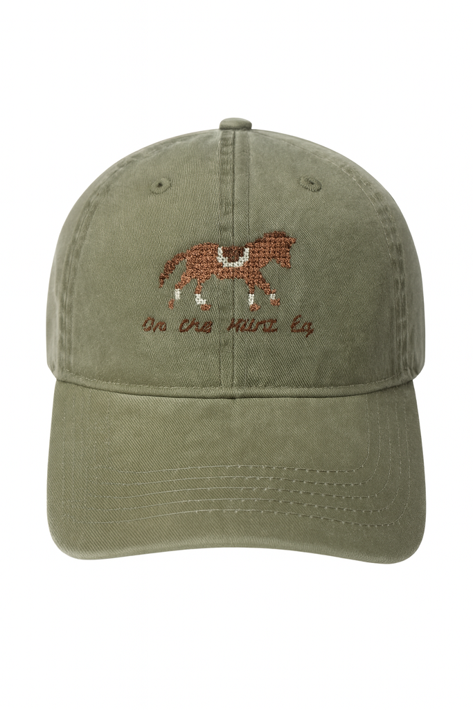 Our Cross Stitch Cap features an embroidered cross stitched horse motif — a nod to timeless craftsmanship with a modern equestrian twist. Made from soft, washed cotton for that perfectly worn-in feel, it’s the hat you’ll grab on repeat — whether you’re heading to the show grounds, out for errands, or grooming ringside.