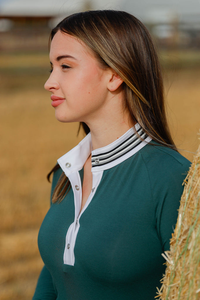 Street & Saddle Gimme Ribbon Equestrian Top in Hunter Green