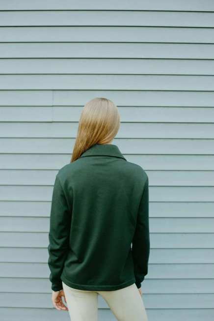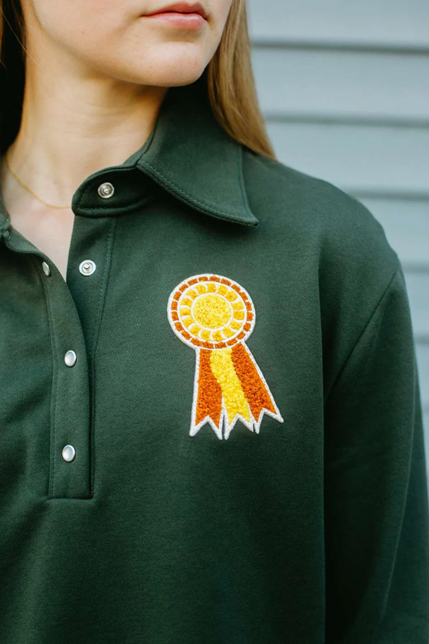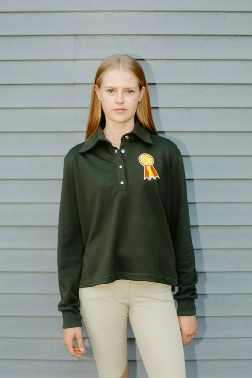 Street & Saddle Rosette Cotton Rugby Sweater in Dark Green